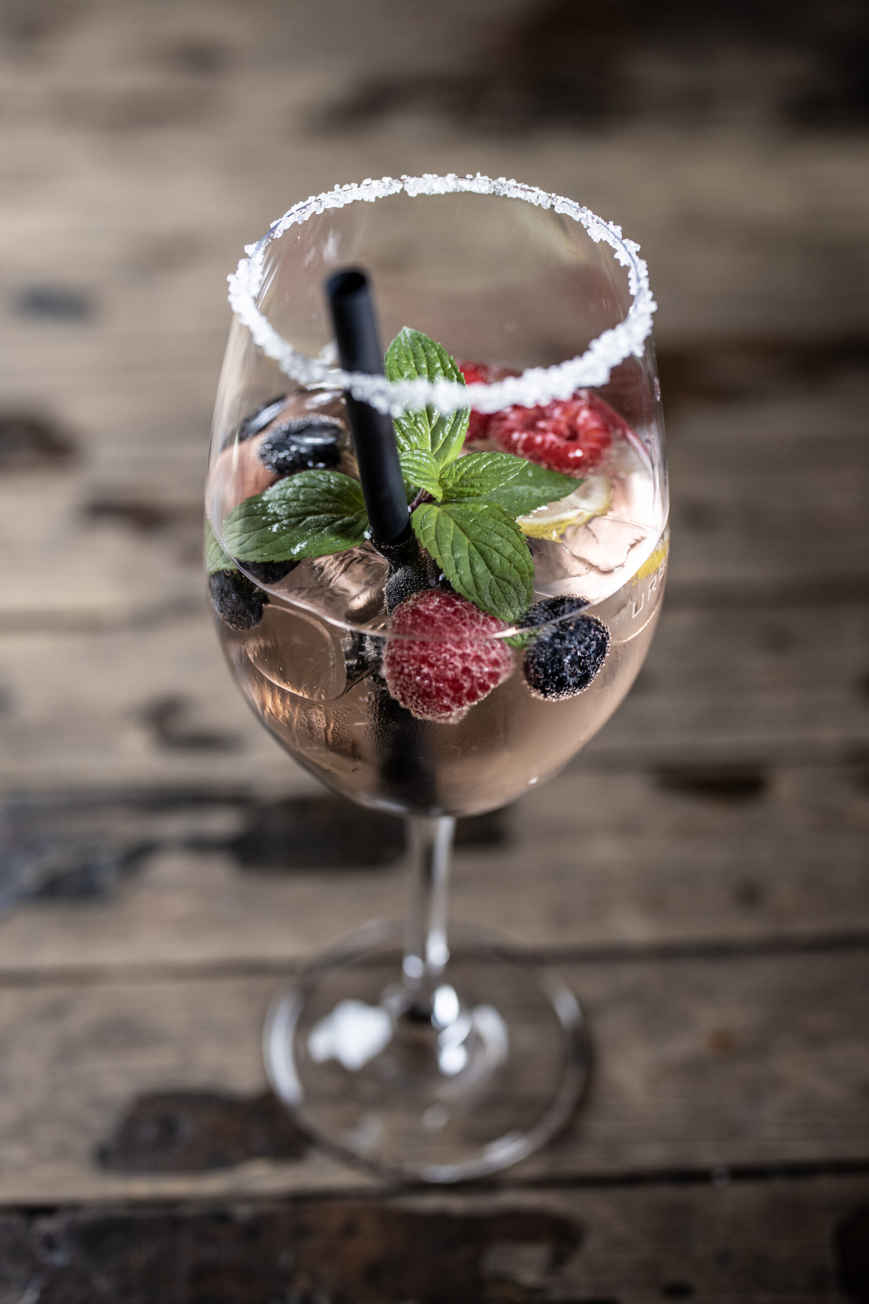 ZITRONENSCHEIBE UND EINEM ZWEIG ROSMARIN … 0,25 LT.